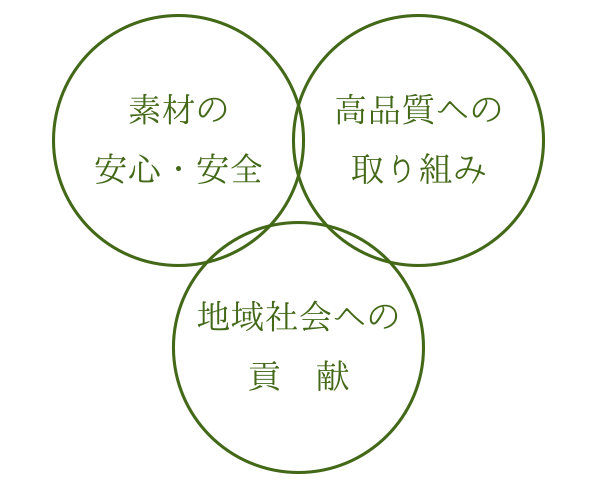 ふるさとに貢献できる企業であるとともに、皆様の幸せな食卓と共にありたい。